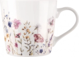 Elegantný porcelánový hrnček s objemom 430 ml s jemným motívom lúčnych kvetov je ideálny na každodenné pitie čaju, kávy aj kakaa. Vďaka kvalitnej porcelánovej glazúre a pohodlnému uchu sa skvele drží, má klasický nadčasový dizajn a možno ho umývať v umývačke aj používať v mikrovlnnej rúre.
