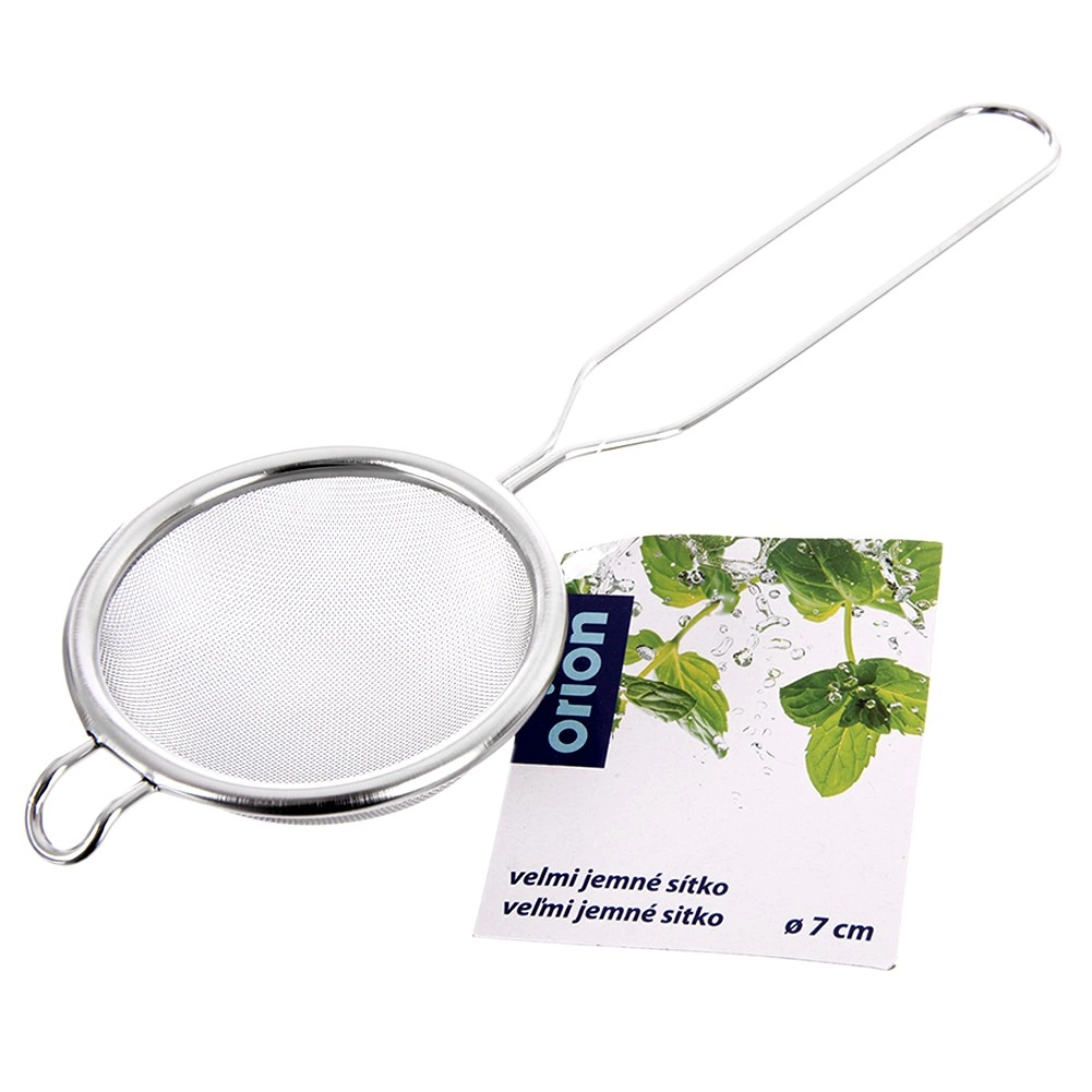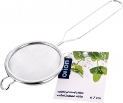 Praktické kuchynské sitko s priemerom 7 cm z kvalitnej nehrdzavejúcej ocele s dlhou rukoväťou a oporným háčikom. Jemná hustá sieťovina spoľahlivo zachytí aj tie najmenšie čiastočky. Ideálne na cedenie čaju, preosievanie múky, posyp práškovým cukrom či cedenie vývaru. Jednoduchá údržba, vhodné do umývačky.