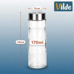 Silné priehľadné sklo a pevné kovové viečka v elegantnom striebornom prevedení kombinujú dlhú životnosť a jednoduchú kontrolu obsahu.