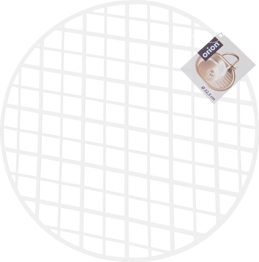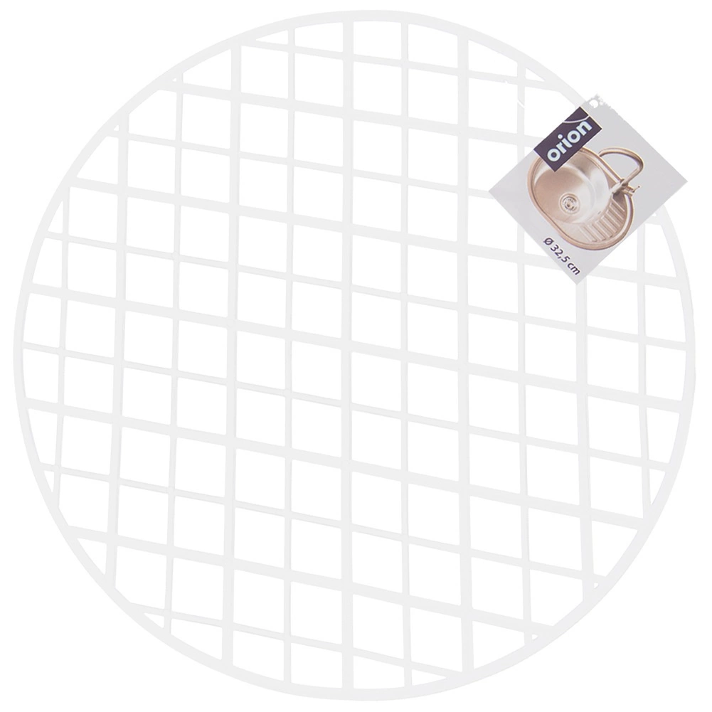 Praktická okrúhla podložka do drezu s priemerom 32,5 cm chráni dno drezu pred poškriabaním a nárazmi. Je vyrobená z odolného plastu, má protišmykový povrch, perforáciu pre voľný odtok vody a odolá teplotám až do 80 °C. Univerzálna biela farba sa hodí do väčšiny kuchýň.
