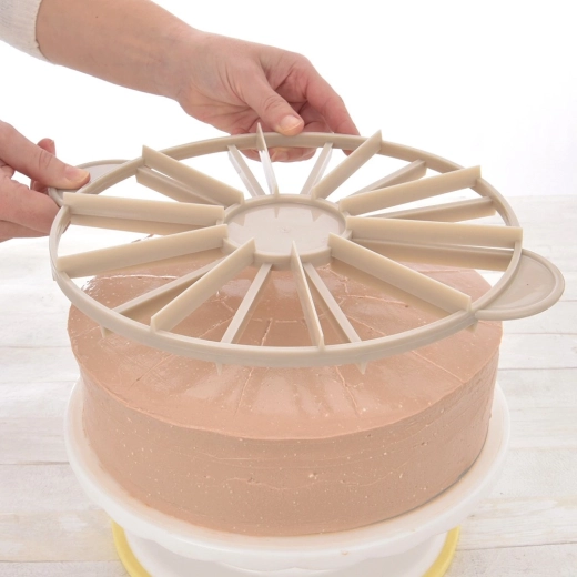 Urobte z krájania tort hračku. Tento obojstranný delič vám pomôže rýchlo a esteticky rozdeliť tortu na 10 alebo 12 rovnomerných porcií a zároveň uľahčí presné rozmiestnenie dekorácií. Vďaka robustnému vyhotoveniu je stabilný, odolný a pohodlne sa používa.