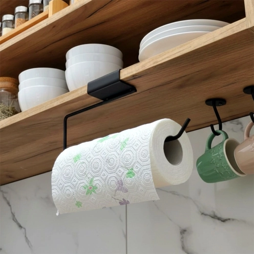 Praktický držiak na papierové utierky v elegantnej čiernej farbe pre rýchly a pohodlný prístup pri varení a upratovaní. Vďaka kompaktným rozmerom sa hodí do každej kuchyne, kancelárie aj kúpeľne a jednoducho sa inštaluje bez náradia. Odolná kovová konštrukcia, univerzálna veľkosť a montáž bez vŕtania z neho robia ideálny doplnok pre moderné aj klasické interiéry.