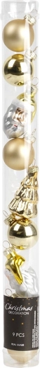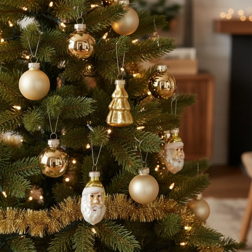 Vytvorte si jedinečnú sviatočnú atmosféru so zlatými ozdobami, ktoré dodajú vašej vianočnej výzdobe nadčasový lesk. Sada kombinuje rôzne tvary a povrchy, takže ľahko dosiahnete harmonické a efektné aranžmány na stromčeku, vencoch aj girlandách.