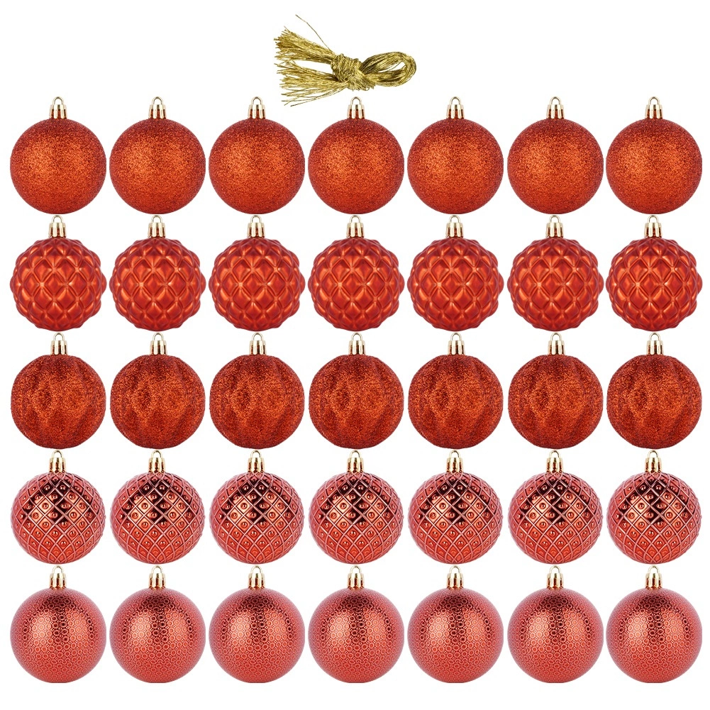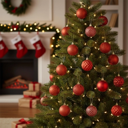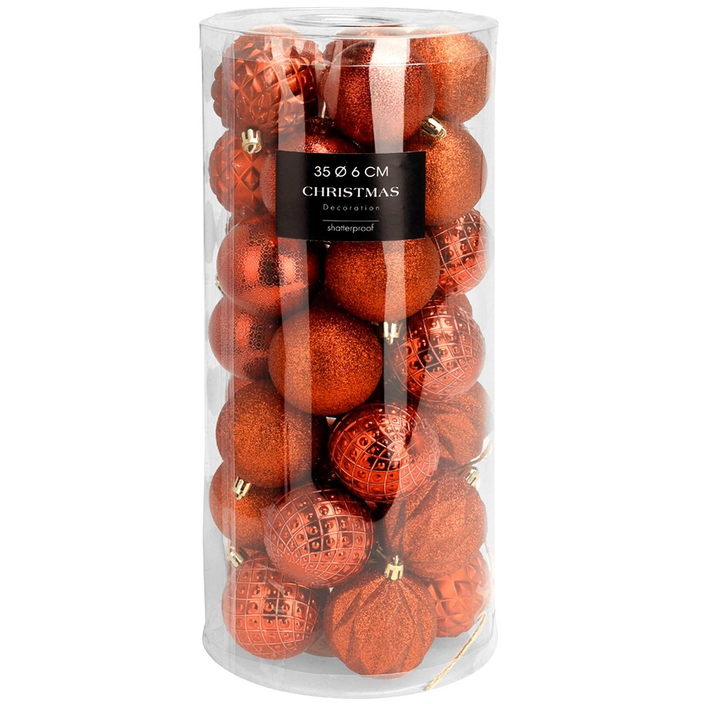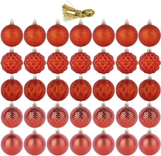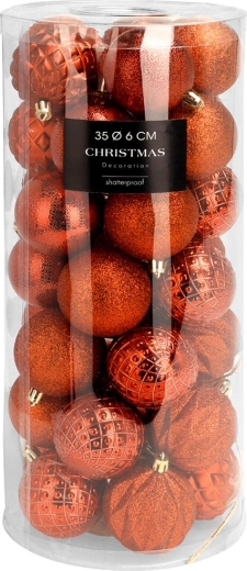 Štýlová sada 35 červených vianočných gúľ s priemerom 6 cm pre klasický sviatočný vzhľad. Gule sú nerozbitné, ideálne do domácností s deťmi a domácimi miláčikmi. Rôzne povrchové úpravy – lesk, mat a trblietky – zabezpečia efektnú a pestrú výzdobu stromčeka, vencov aj girland.