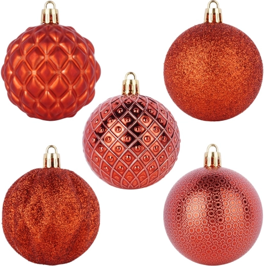 Vytvorte si doma čarovnú vianočnú atmosféru pomocou elegantnej sady červených gúľ. Nerozbitné prevedenie z kvalitného plastu zaručuje bezpečné a dlhodobé používanie, zatiaľ čo kombinácia 5 rôznych dekorov s lesklým, matným a trblietavým finišom dodá vašej výzdobe hĺbku a šmrnc.