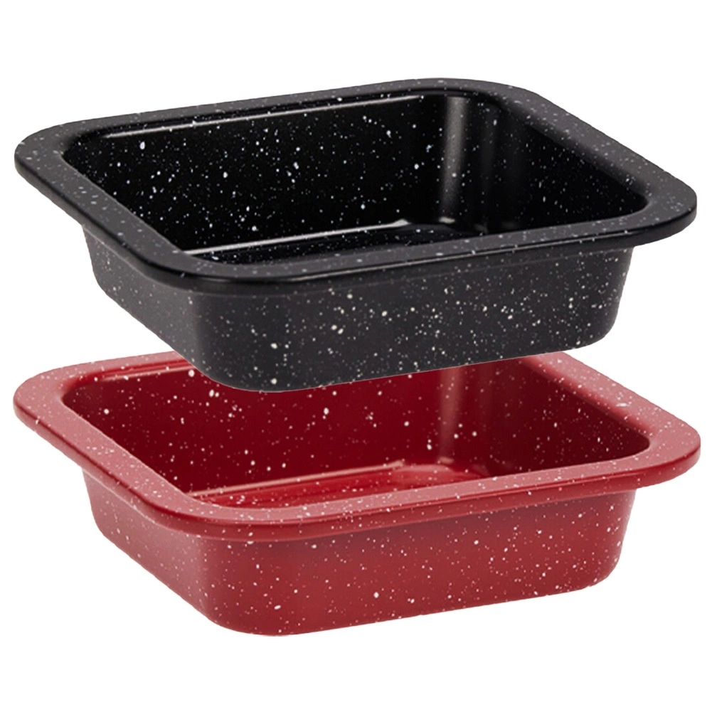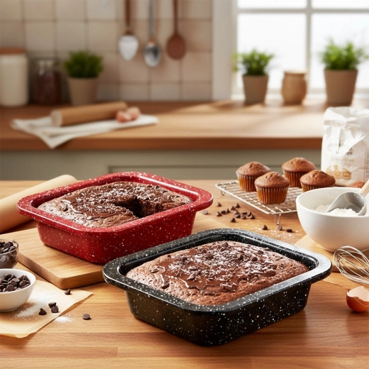 Sada dvoch kompaktných foriem skvelo zapadne do každej kuchyne – od rýchlych dezertov po vyberané slané jedlá. Vďaka granitovej nepriľnavej vrstve sa cesto nelepí a hotové porcie ľahko vyberiete bez poškodenia. Uhlíková oceľ výborne vedie teplo, takže sa môžete spoľahnúť na rovnomerné výsledky pri každom pečení.