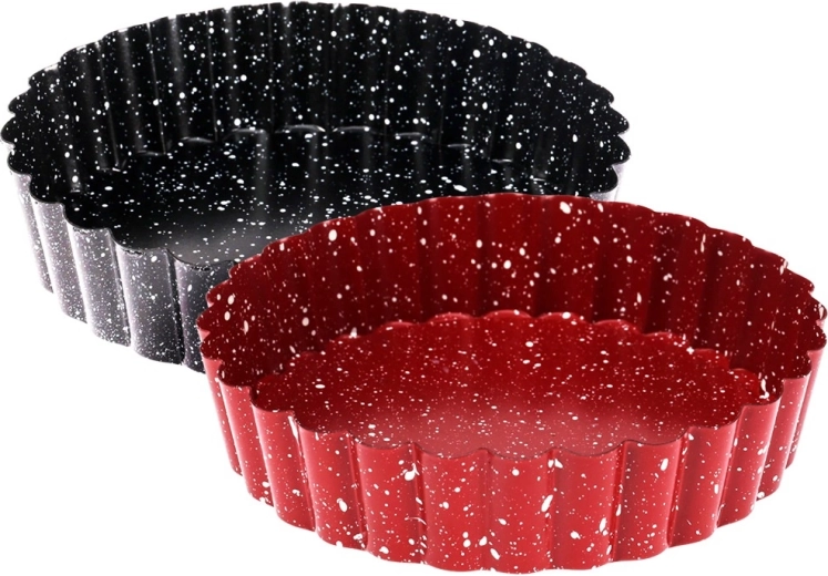 Objavte radosť z domáceho pečenia s praktickou sadou 2 foriem na tartaletky, ideálnych pre sladké aj slané recepty. Vďaka vyberateľnému dnu vyberiete hotové tartaletky bez námahy a s dokonalým tvarom, zatiaľ čo nepriľnavá granitová vrstva zabráni pripaľovaniu a uľahčí čistenie.