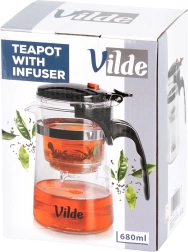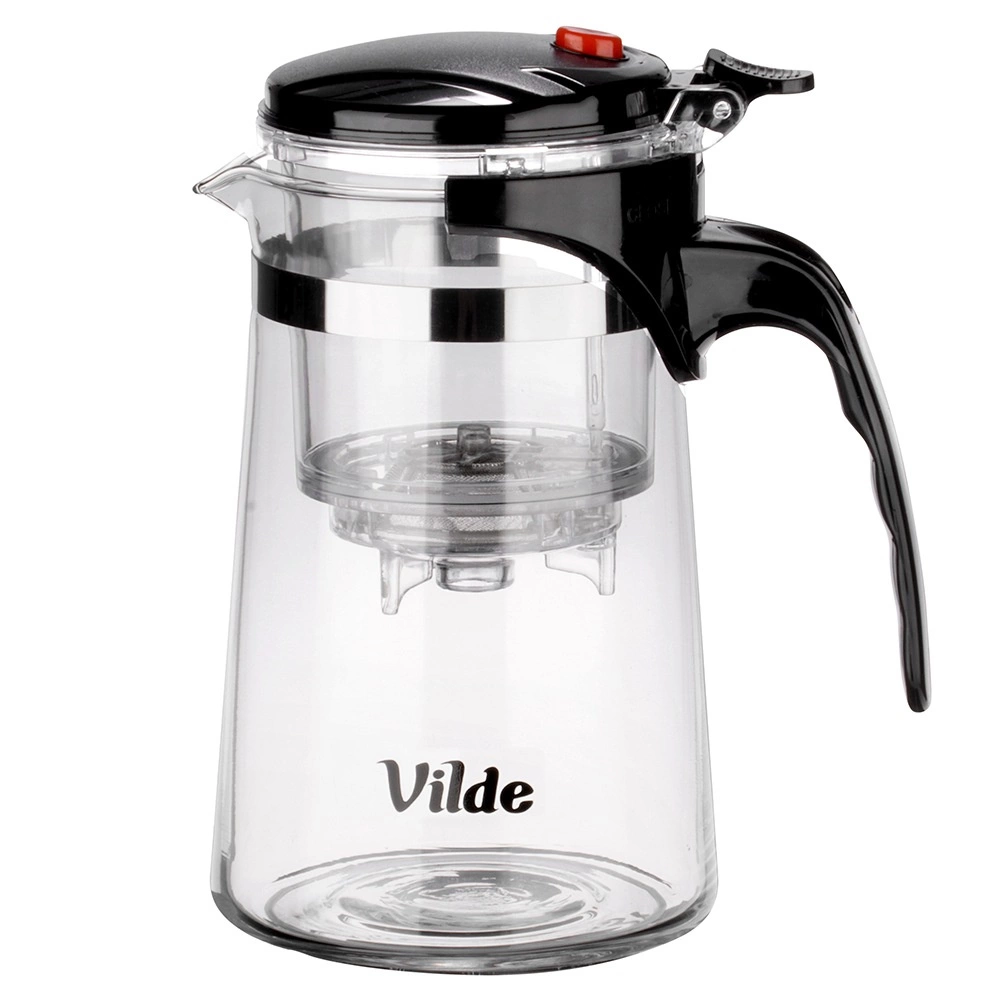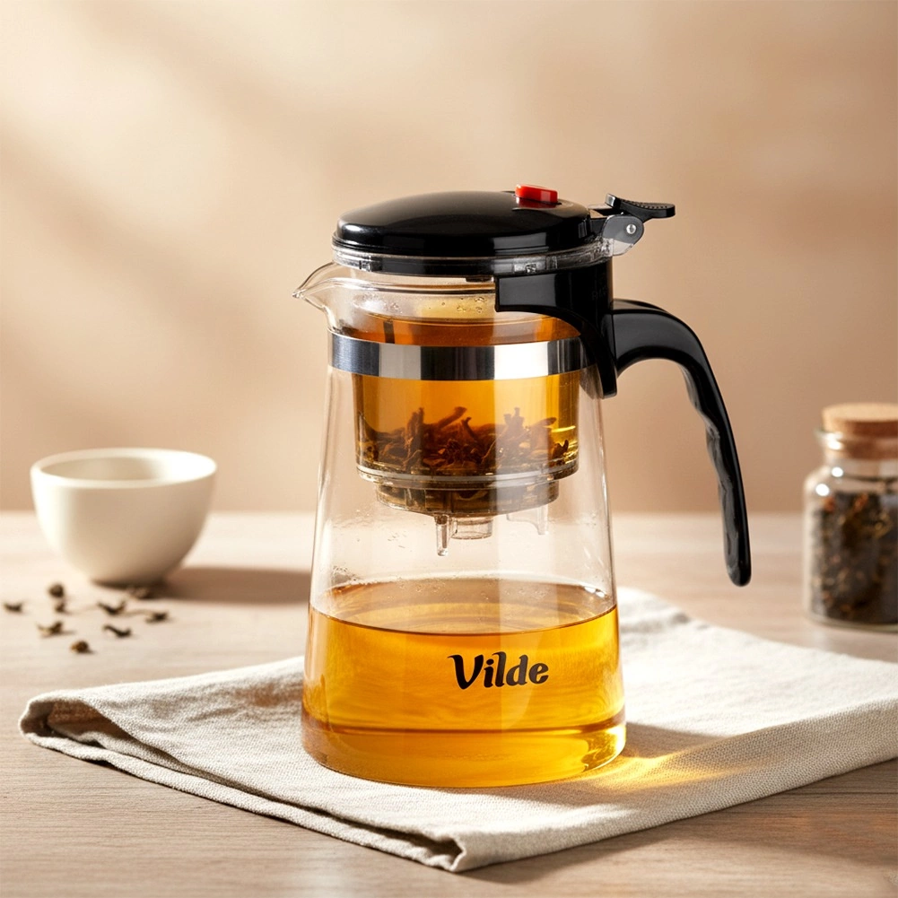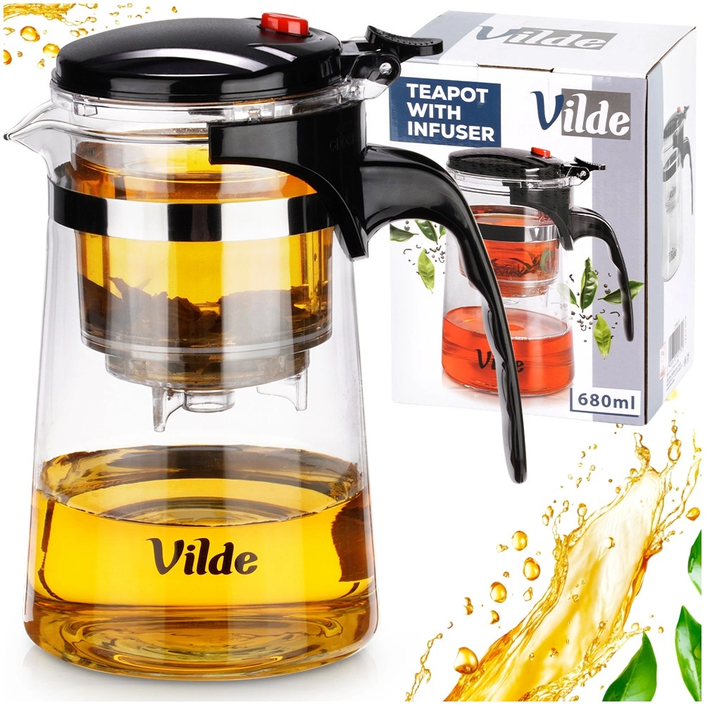 Praktická sklenená kanvica so systémom výpustného sparovača na prípravu sypaného čaju, bylín a ovocných nálevov. Vďaka transparentnému borosilikátovému sklu môžete sledovať proces lúhovania a jediným stlačením uvoľniť hotový nálev do spodnej kanvice. Objem 680 ml je ideálny na každodenné používanie, odolné borosilikátové sklo zvláda teploty od -20 °C do 120 °C a pohodlné nalievanie zabezpečuje ergonomické ucho a zobáčik. Originálny produkt značky VILDE.