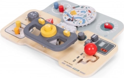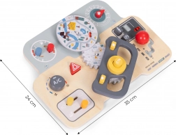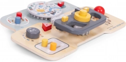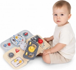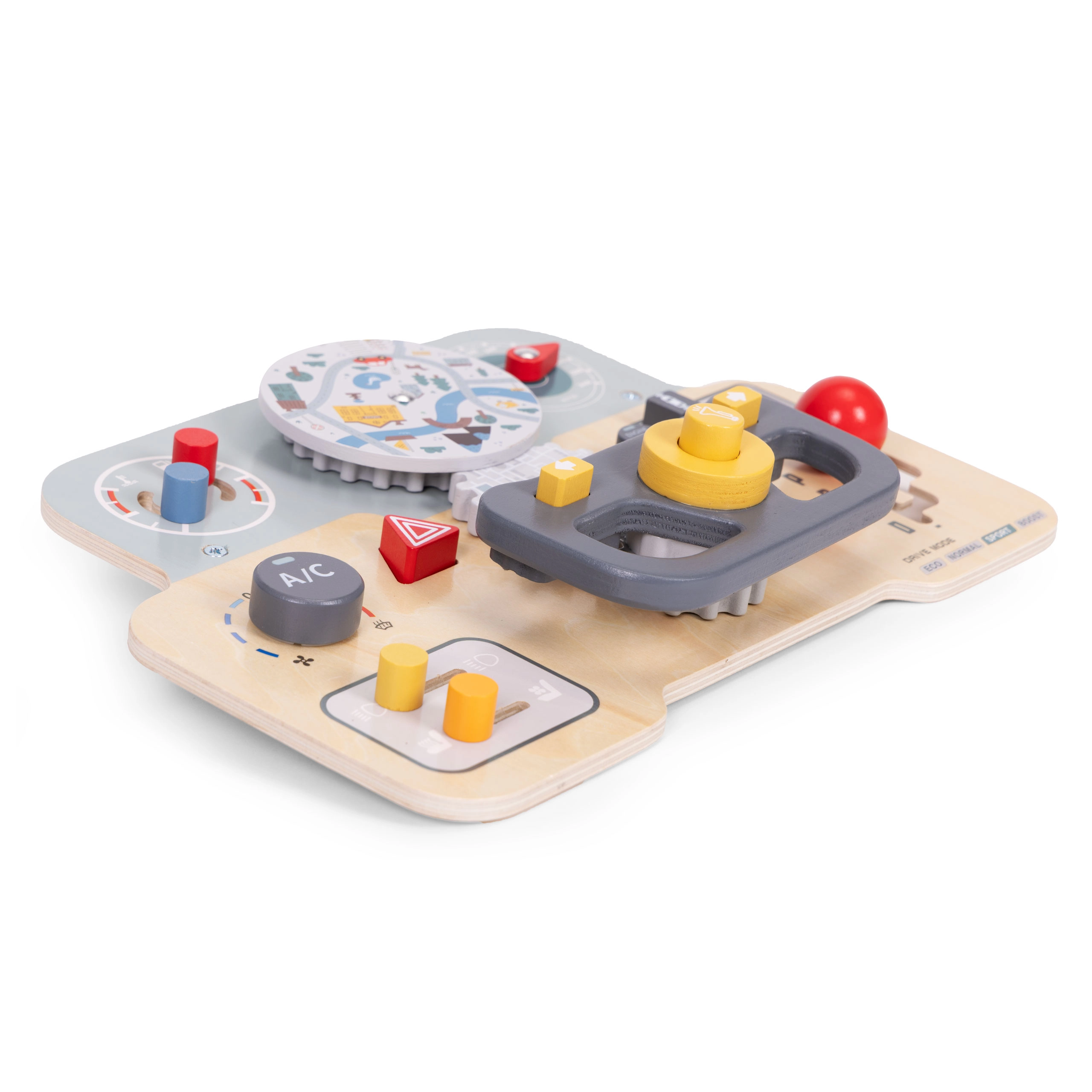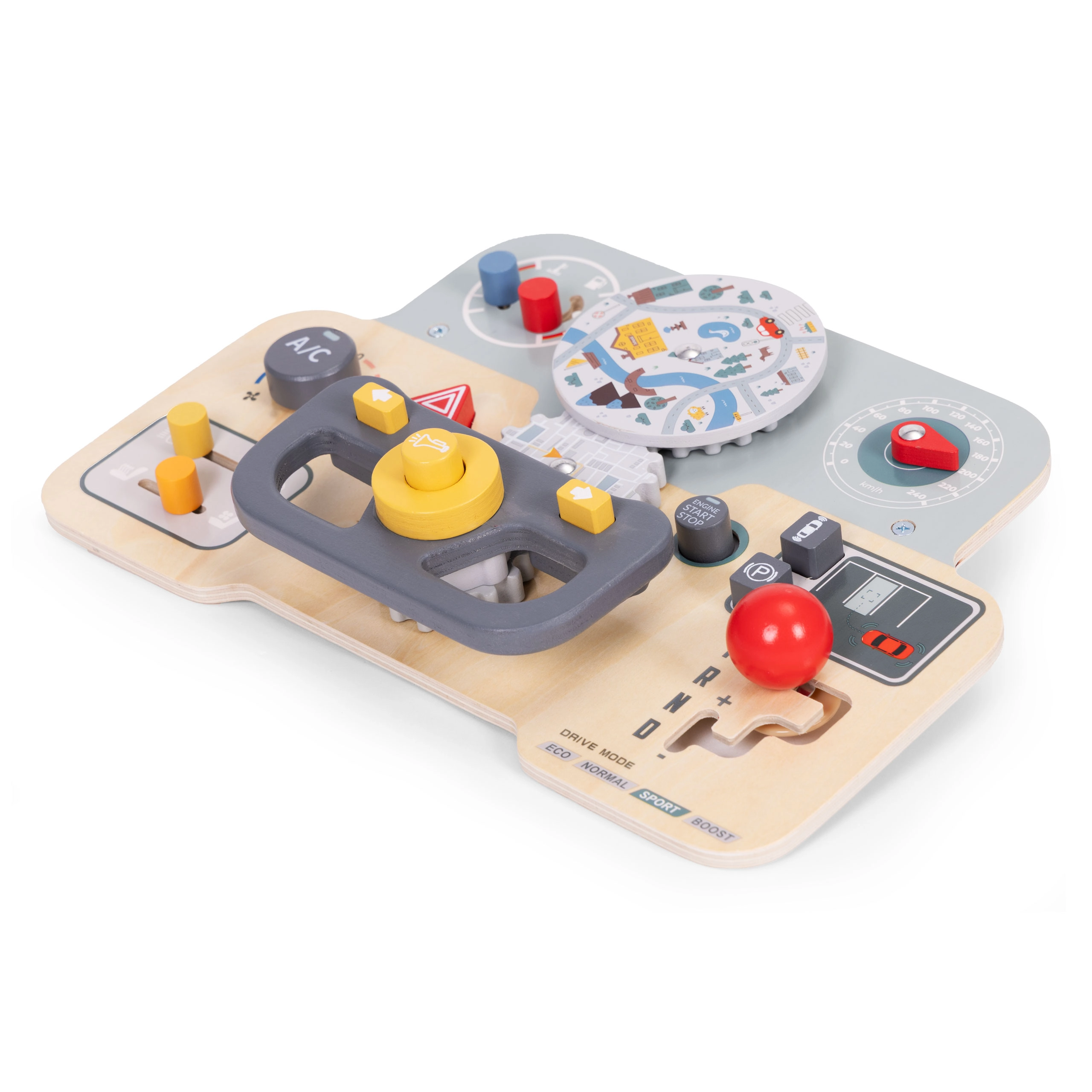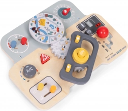 Táto drevená senzorická doska verne napodobňuje palubnú dosku auta a premieňa učenie na zábavnú hru. Deti môžu otáčať volantom, stláčať tlačidlá, posúvať prepínače a skúmať rôzne ovládače – to všetko podporuje rozvoj motoriky, sústredenie aj učenie príčin a následkov.