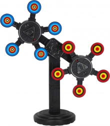 Trénujte mierenie a rýchle reakcie s elektronickým terčom, ktorý sa otáča a mení tempo. Vďaka digitálnemu počítaniu zásahov získate okamžitú spätnú väzbu a každý hráč uvidí svoje skóre. Farebné terče s terčiskom priťahujú pozornosť a motivujú k ďalším pokusom.