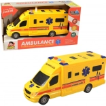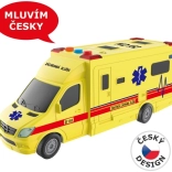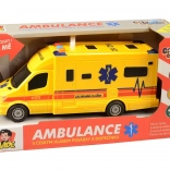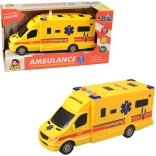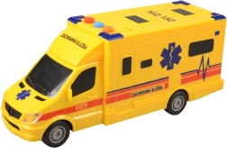 Realistická detská sanitka na zotrvačník so svetelnými efektmi, zvukom majáka a hlasovými hláškami dispečingu a posádky. Plastové prevedenie, veľkosť cca 19 cm, ideálne pre chlapcov aj dievčatá od 3 rokov.