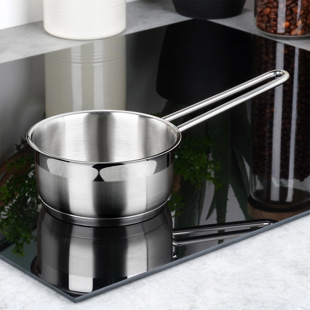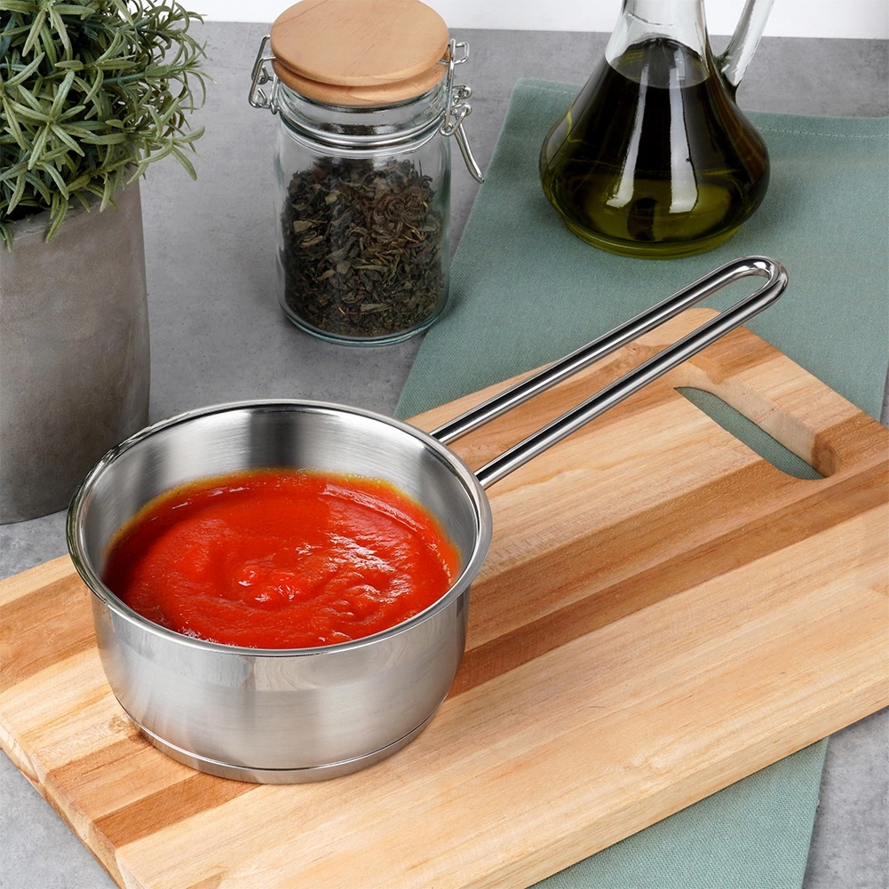 Praktický rendlík z kvalitnej nehrdzavejúcej ocele v elegantnej striebornej farbe zaujme svojou odolnosťou a univerzálnosťou. Vďaka kompaktným rozmerom je skvelý na ohrievanie mlieka, omáčok či príloh a výborne sa hodí aj do menších kuchýň.