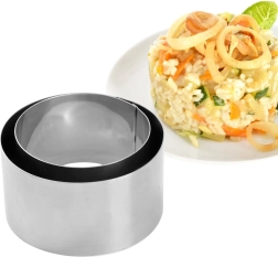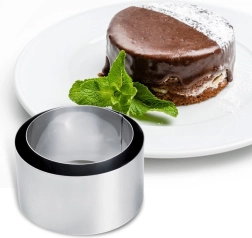 Nerezové krúžky vytvarujú dezerty, šaláty aj prílohy do precíznych valcov s hladkým okrajom pre pôsobivú prezentáciu na tanieri.