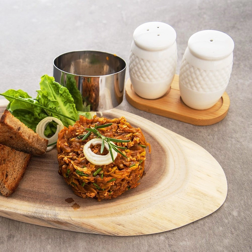 Sada dvoch nerezových krúžkov je ideálna na prípravu tortičiek, tartaletiek, vrstvených šalátov, ryže, zemiakov či želé. Odolná nehrdzavejúca oceľ zaručuje dlhú životnosť, hygienu a stabilný tvar. Vďaka dvom veľkostiam vytvoríte efektné porcovanie a plating ako v profesionálnej kuchyni.