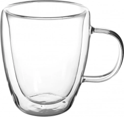 Elegantný termo pohár s dvojitou stenou s objemom 300 ml udrží vaše nápoje dlhšie v požadovanej teplote. Vďaka borosilikátovému sklu je ľahký, odolný a zároveň tepelne izolačný. Skvelý na latte, kávu aj čaj, s pohodlným uchom na uchopenie a efektným vzhľadom pri servírovaní.