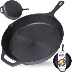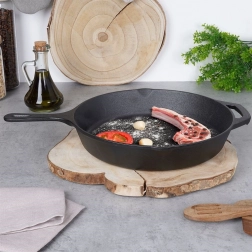 Vďaka kompatibilite so všetkými typmi varných dosiek vrátane indukcie, možnosti použitia v rúre aj nad otvoreným ohňom a praktickým prvkom – dvom madlám pre bezpečný úchop a dvom výlevkám pre ľahké zlievanie – sa stane nepostrádateľným pomocníkom. Pri správnej údržbe (umytie, dôkladné vysušenie a pravidelné olejovanie) vám bude slúžiť celé roky.