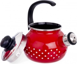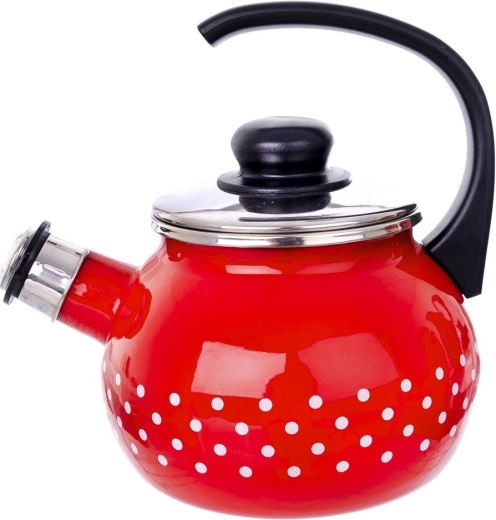 Táto smaltovaná kanvica spája klasický vzhľad s každodennou praktickosťou. Vďaka robustnej ocele so smaltovaným povrchom výborne vedie teplo, píšťalka spoľahlivo upozorní na var a ergonomické madlo zostáva príjemne chladné. Červené prevedenie s bielymi bodkami dodá vašej kuchyni dekoratívny akcent.