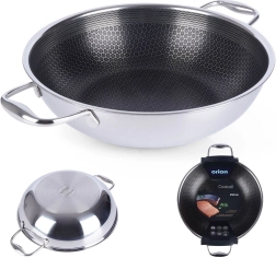 Prémiový nerezový wok COOKCELL s priemerom 28 cm s hybridnou nepriľnavou povrchovou úpravou na rýchle a rovnomerné vyprážanie. Odolá vysokým teplotám, je úsporný na energiu, vhodný na indukciu aj do rúry do 260 °C a zvládne aj umývačku riadu. Ideálny na ázijské stir‑fry, mäso aj zeleninu.