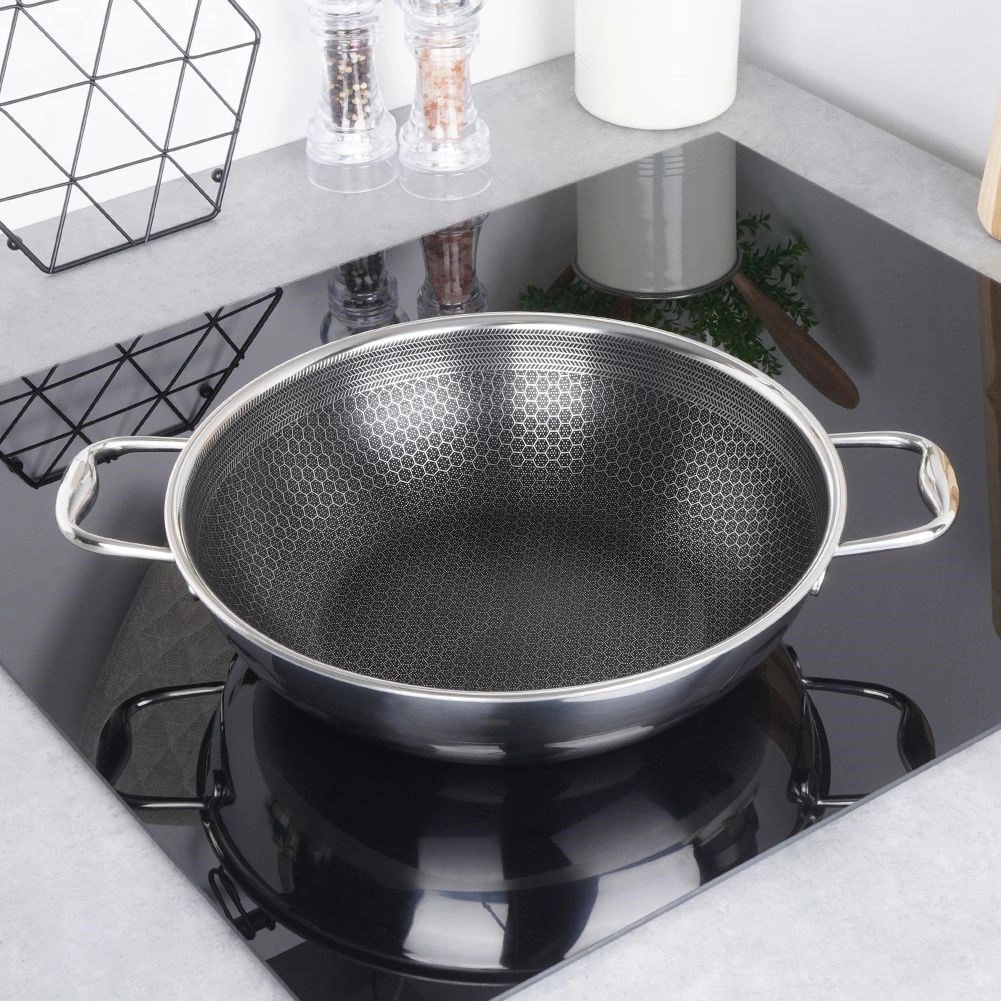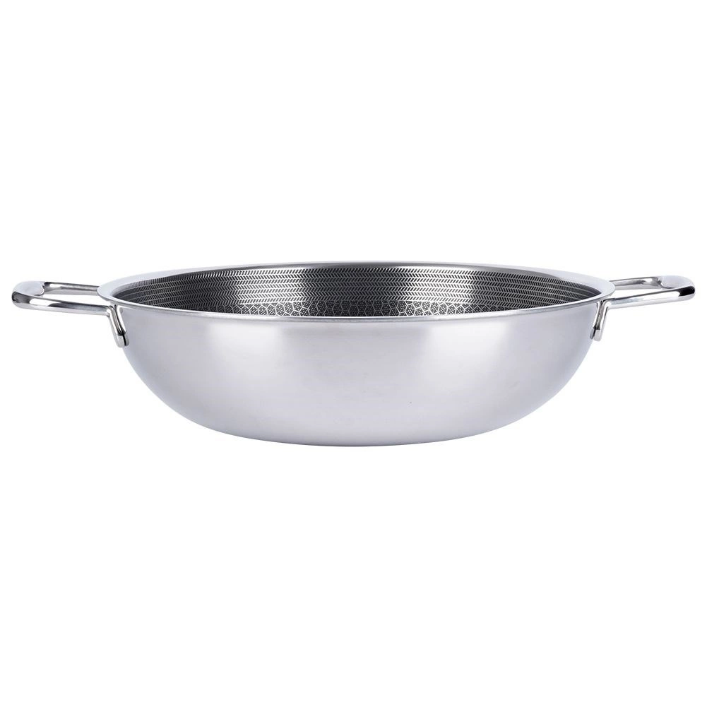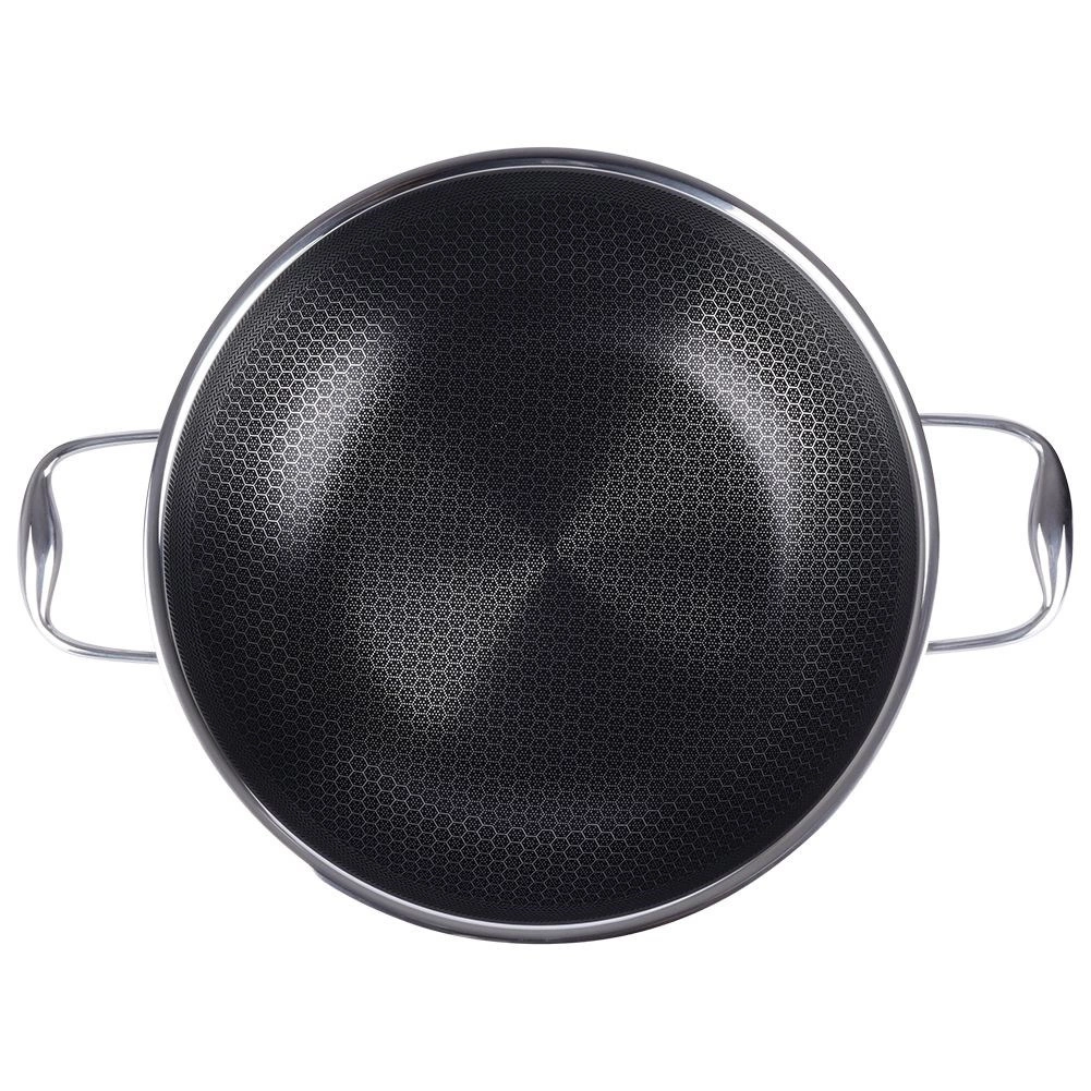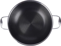 Nadčasový wok z nehrdzavejúcej ocele zo série COOKCELL HYBRID kombinuje odolnosť ocele s modernou nepriľnavou technológiou s hexagonálnou štruktúrou. Vďaka skvelému prenosu tepla pripravíte chutné a šťavnaté jedlá s minimom oleja, pričom suroviny si zachovajú svoju prirodzenú chuť aj živiny.