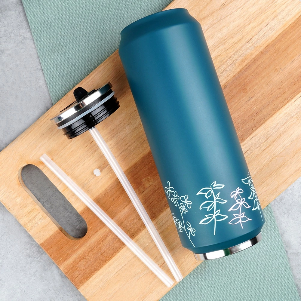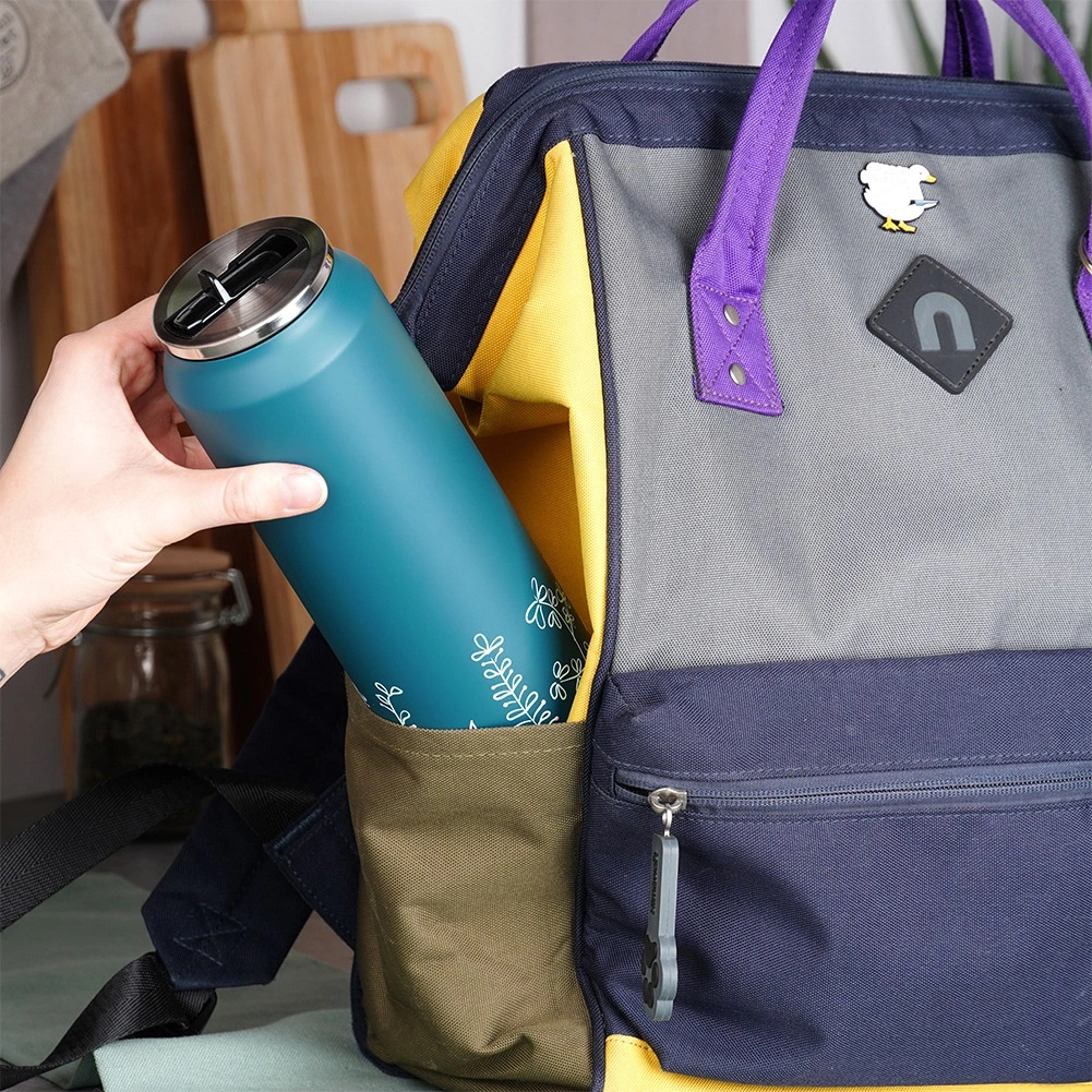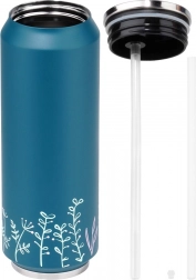 Ergonomické viečko s výklopným náustkom a integrovanou slamkou umožňujú pohodlné pitie bez nutnosti hrnček nakláňať – ideálne na cestovanie, do práce aj na výlety. Štýlový rastlinný dekor na modrom pozadí podčiarkuje elegantný vzhľad a robí z hrnčeka skvelý tip na darček.