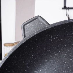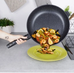 Granitová panvica z radu Grande spája masívne hliníkové telo s odolnou nepriľnavou vrstvou Pfluon Granit pre zdravšie varenie bez pripaľovania. Efektívne vedenie tepla skracuje čas prípravy a šetrí energiu, zatiaľ čo ergonomická rukoväť zostáva chladná a pohodlne sa drží.