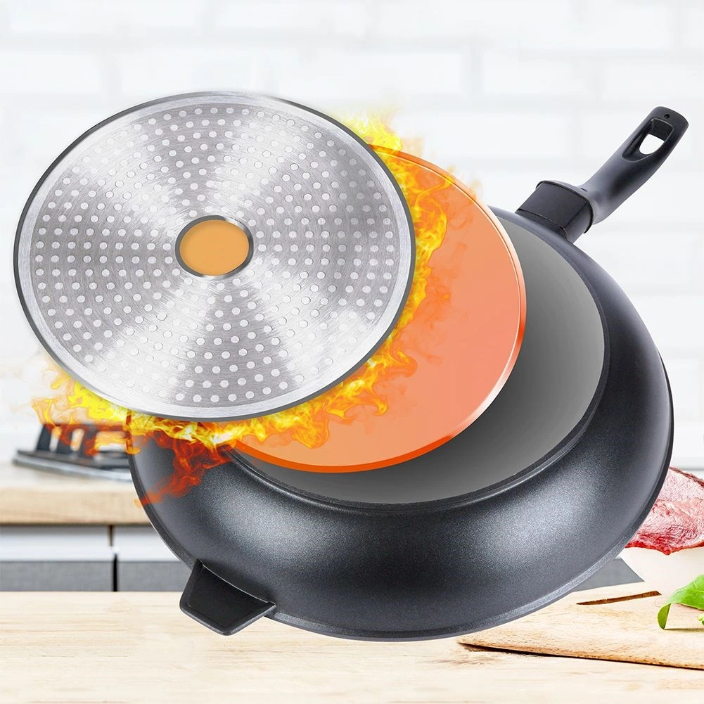 Viacvrstvé dno s indukčnou doskou zabezpečuje efektívny prenos tepla a kompatibilitu s plynom, elektrinou, sklokeramikou, halogénom aj indukciou.
