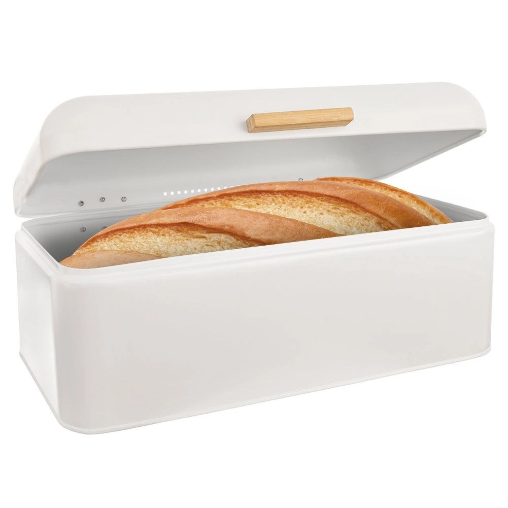 Kovový chlebník WHITELINE v bielej farbe je štýlový a funkčný doplnok do každej kuchyne. Vďaka pevnému kovovému prevedeniu a kvalitnému spracovaniu zostane vaše pečivo dlhšie mäkké a chrumkavé. Veko na pántoch sa otvára zhora pomocou pohodlného bambusového madla, ktoré uľahčuje každodenné používanie.