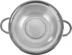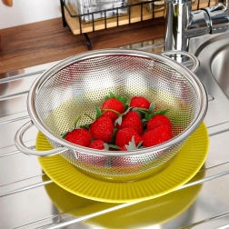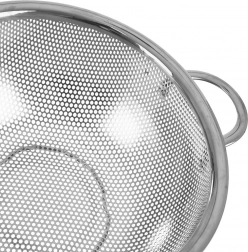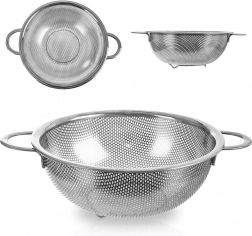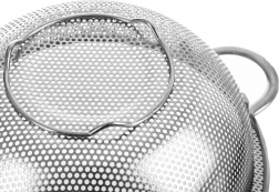Univerzálny kuchynský cedník v tvare misky na každodenné používanie. Ideálny na umývanie ovocia a zeleniny, scedenie cestovín a ryže. Vyrobený z nehrdzavejúcej ocele v elegantnej striebornej farbe, s pohodlnými úchytmi, stabilnými nožičkami a možnosťou umývania v umývačke. Séria ANETT.