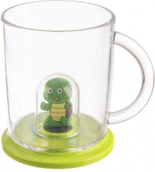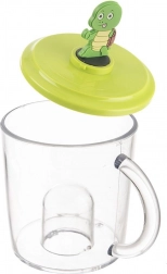 Praktický detský hrnček s odnímateľnou figúrkou korytnačky na viečku poteší každého malého milovníka zvierat. Pokrievka chráni nápoj pred nečistotami a hmyzom a možno ju použiť aj ako podložku. Figúrka poslúži aj na hru a na viečku vytvára efekt „korytnačky v nápoji“. Hrnček je vhodný na čaj, vodu, džús aj kakao.