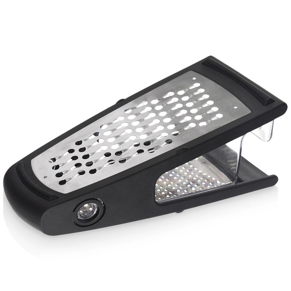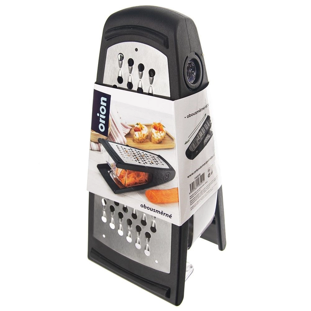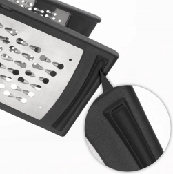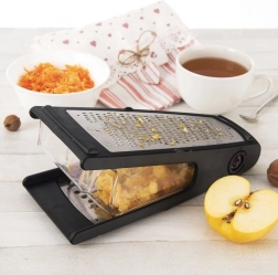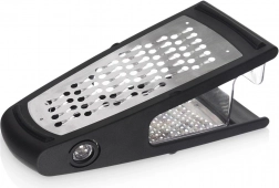 Univerzálne kuchynské strúhadlo s odnímateľnou transparentnou nádobkou zjednodušuje prípravu surovín a udržiava pracovnú plochu čistú. Dve rôzne strúhacie plochy umožnia perfektný výsledok pri strúhaní zeleniny, ovocia, syrov, čokolády aj korenia. Stabilné antisklzové zakončenie bráni posunu počas práce.