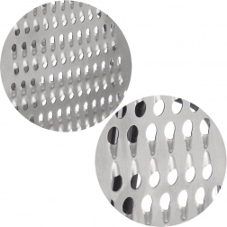 Jemná 2 mm a hrubá 6 mm strana zvládnu zeleninu, ovocie, syry aj čokoládu – od jemných hobliniek po väčšie kúsky.