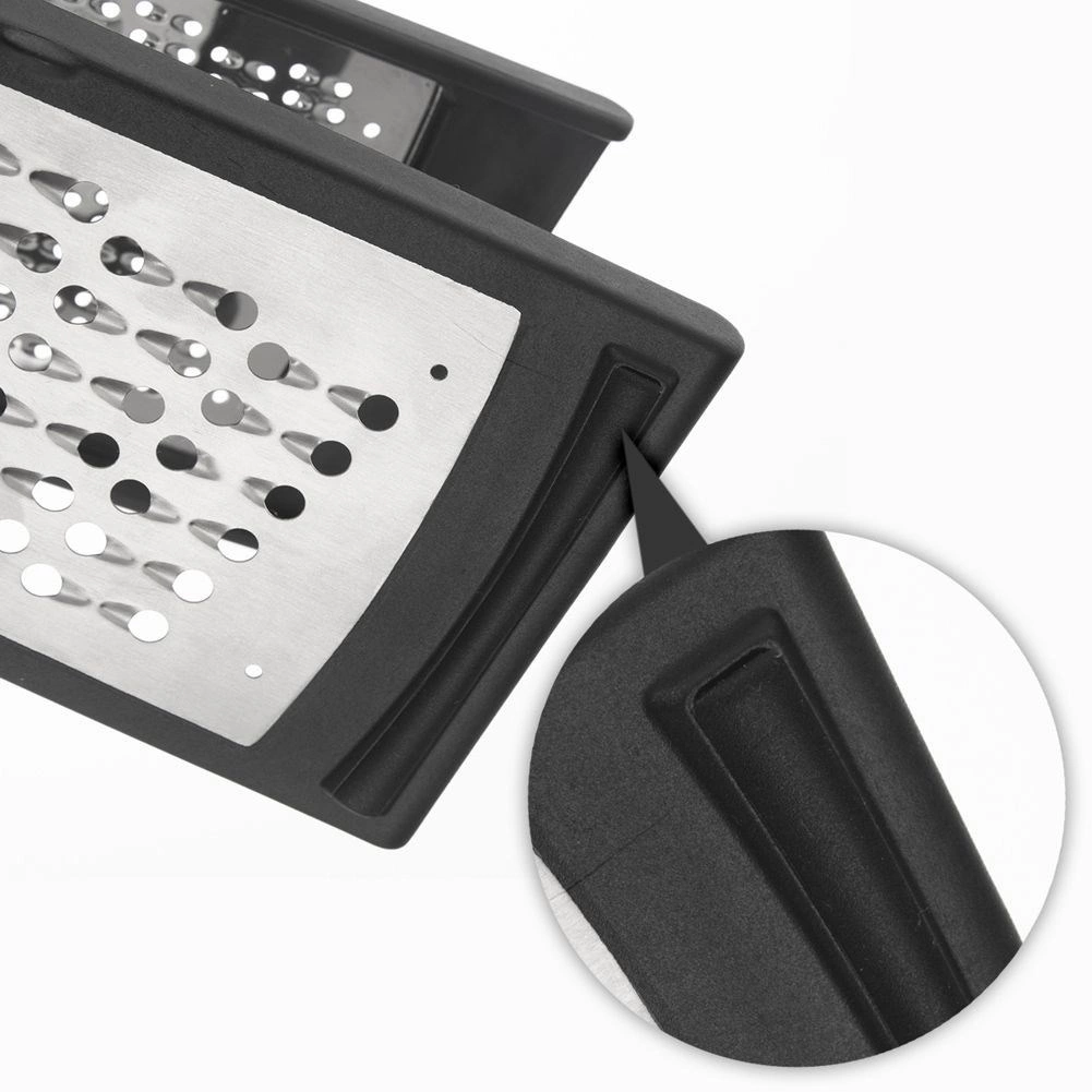 Vďaka odolnej nerezovej oceli a kvalitnému plastu je strúhadlo robustné a zároveň ľahké na manipuláciu. Nádobka bezpečne zachytí nastrúhané suroviny a uľahčí ich presýpanie do misy alebo priamo do pokrmu. Strúhadlo je ľahko umývateľné v umývačke, čo šetrí čas aj námahu.