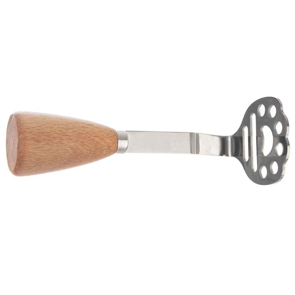Praktický lis na zemiaky a zeleninu z kvalitnej nerezovej ocele s ergonomickou drevenou rukoväťou zaistí hladké pyré bez námahy. Kompaktné rozmery 5,5 × 14,5 cm, odolné prevedenie, jednoduché čistenie a univerzálne použitie na zemiaky, zeleninu, ovocie aj nátierky.
