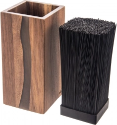 Štetinová (vláknitá) vložka umožní voľne zasunúť nože, nožnice aj príbor bez pevných slotov. Ostrie je chránené a vždy bezpečne zafixované.