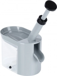 Manuálny piest s ergonomickou rukoväťou odstráni kôstky v okamihu. Odpeckované plody plynule odchádzajú žliabkom do misky, kôstky padajú do priehľadného zásobníka.