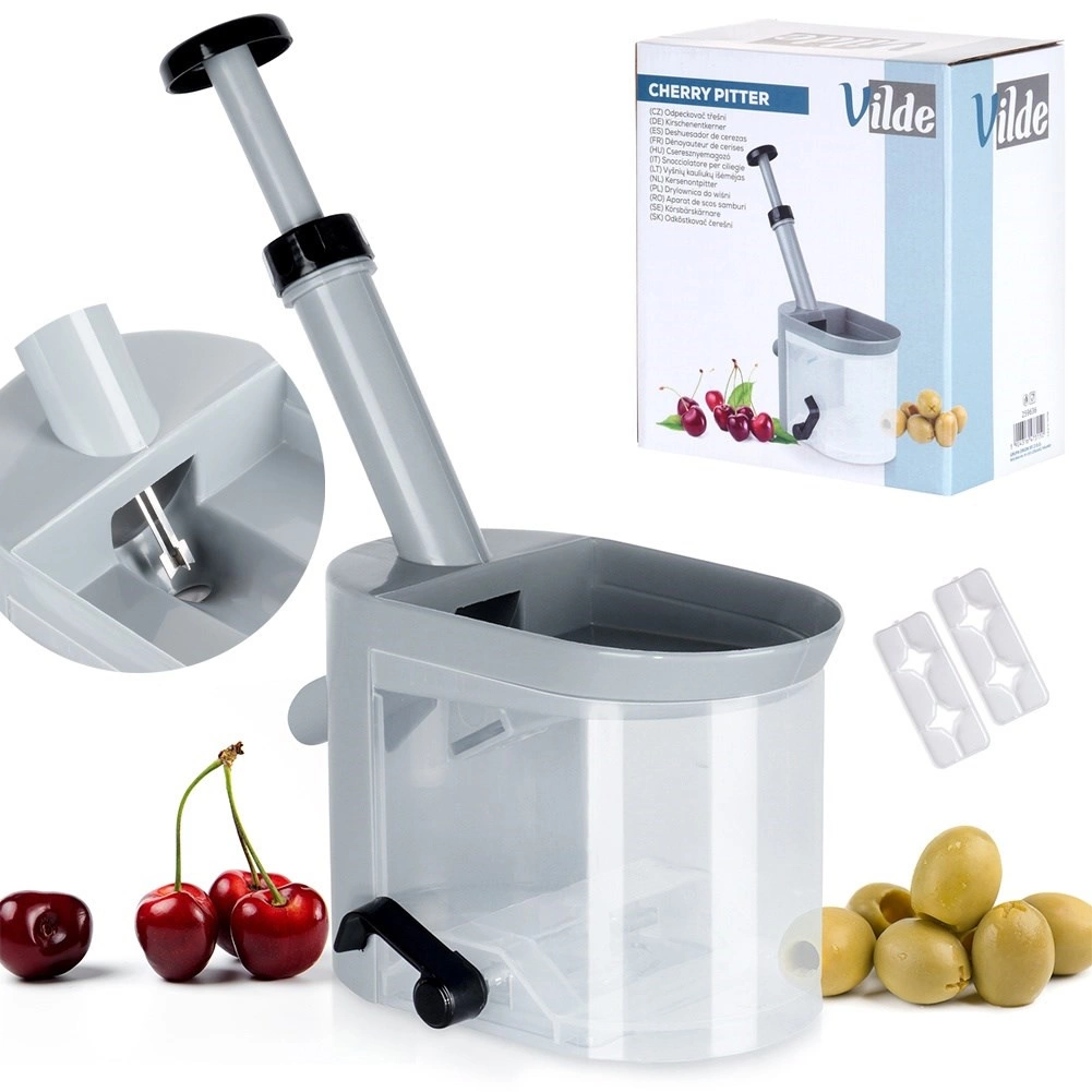 Precízne nerezové ostrie si poradí s čerešňami, višňami aj olivami. Telo z kvalitného plastu je ľahké a vhodné do umývačky; súčasťou sú 2 náhradné gumové vložky.