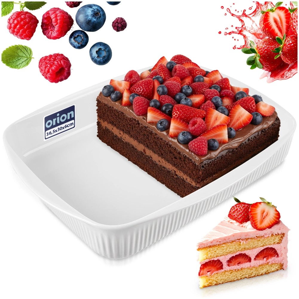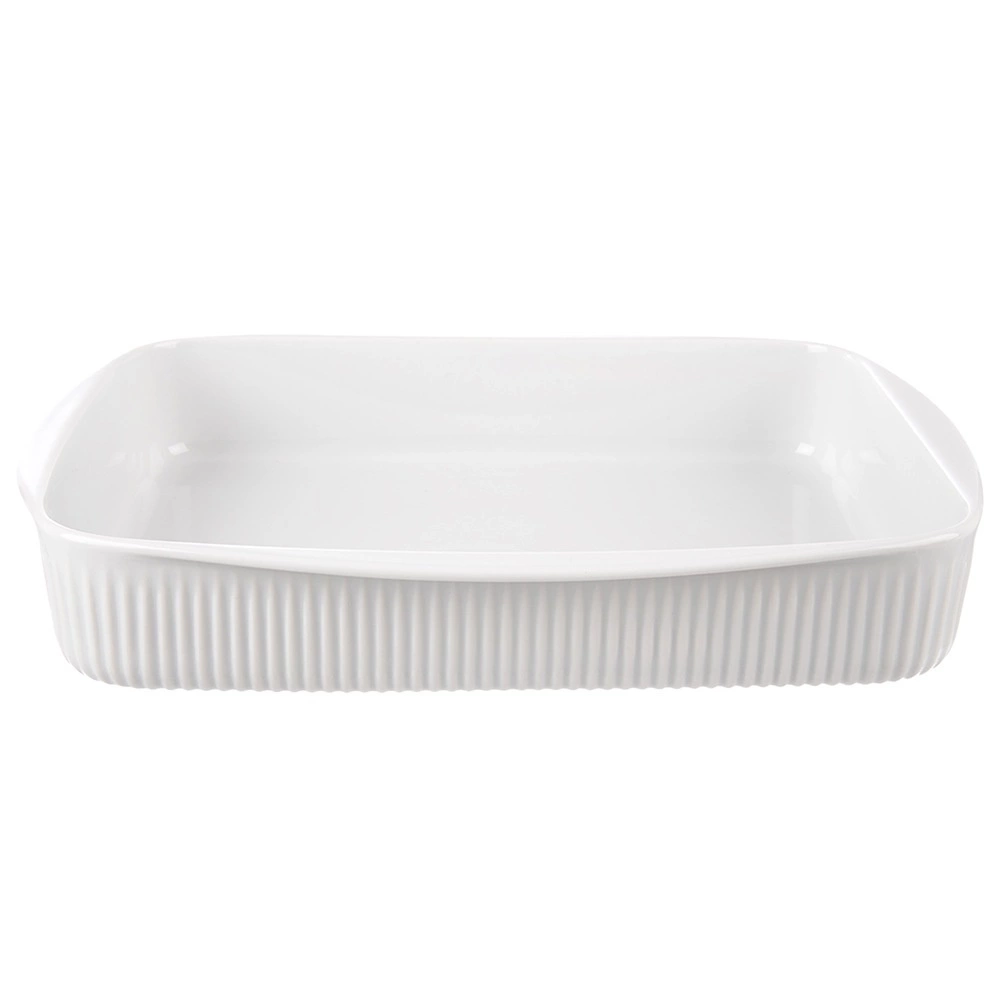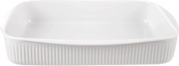 Veľká porcelánová zapekacia misa s objemom 4 l a rozmermi 36,5 × 30 × 6 cm je ideálna na zapekané jedlá, sladké aj slané dezerty a každodenné pečenie. Odolná porcelánová konštrukcia v bielej farbe, dve praktické úchytky na jednoduché prenášanie a možnosť použitia v rúre, mikrovlnke aj umývačke riadu.