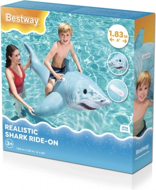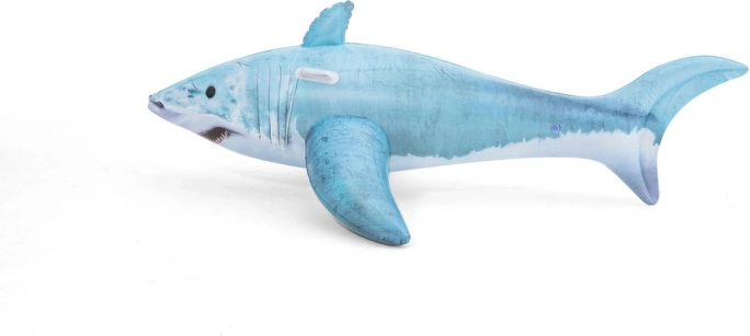 Žralok s detailnou potlačou, plutvami a chvostom vynikne v každom bazéne. Veľkosť 183 × 102 cm poskytuje pohodlie a stabilitu pri jazde.
