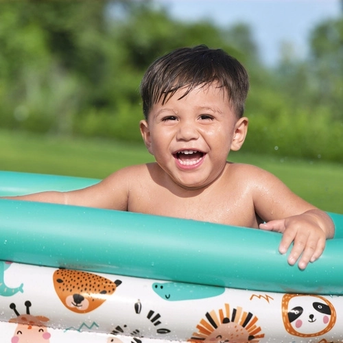 Tri samostatné nafukovacie prstence zvyšujú stabilitu a pohodlie pri hraní, aj keď je bazén naplnený len čiastočne.