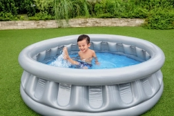 Nafukovací bazénik v tvare vesmírnej lode prináša deťom množstvo letnej zábavy a pohodlné schladenie. Vďaka mäkkému nafukovaciemu dnu a príjemným stenám slúžiacim ako opierka je pobyt vo vode komfortný aj pre najmenších. Bazén sa ľahko nafukuje a vypúšťa, takže jeho skladovanie aj prenášanie je hračka.