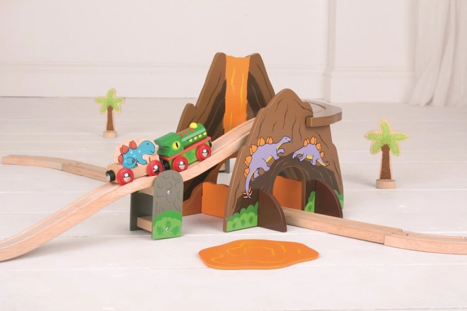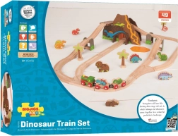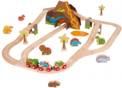 Zažite dobrodružstvo v praveku s vláčkodráhou, kde sa železnica stretáva s dinosaurami. Deti si postavia okruh okolo sopky s tunelom, prejdú dinosauřím vlakom a vytvoria vlastné príbehy s pestrofarebnými figúrkami. Drevené dieliky sú robustné, príjemné na dotyk a ideálne na každodenné hranie.