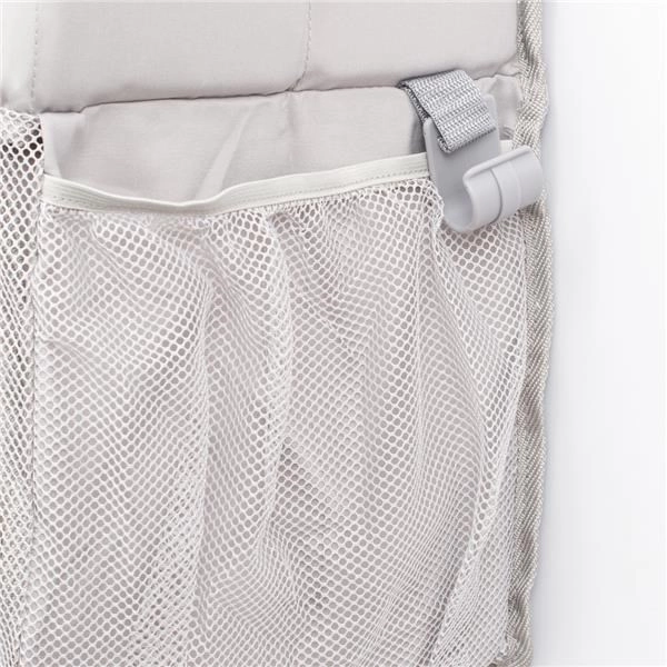 Z kvalitného 100% polyesteru pre dlhú životnosť a jednoduchú údržbu. Rodičia ocenia rýchlu montáž na postieľku a stabilné uchytenie. Ideálny na každodennú organizáciu plienok, vlhčených obrúskov, kozmetiky, cumlíkov aj drobných hračiek.