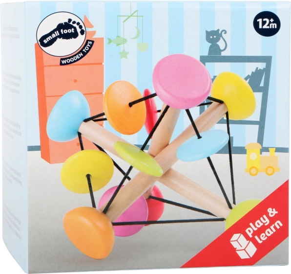 Táto šikovná motorická hračka od small foot je navrhnutá pre malé detské rúčky. Tri drevené tyčky spojené pružnými gumičkami vytvárajú stabilnú, no poddajnú konštrukciu, ktorú môžu deti voľne tvarovať. Farebné koráliky sa pri presúvaní a otáčaní príjemne ozývajú, čím podporujú zmyslový rozvoj a koncentráciu.