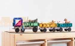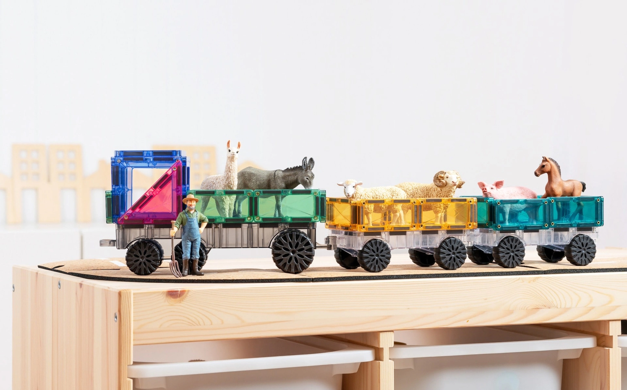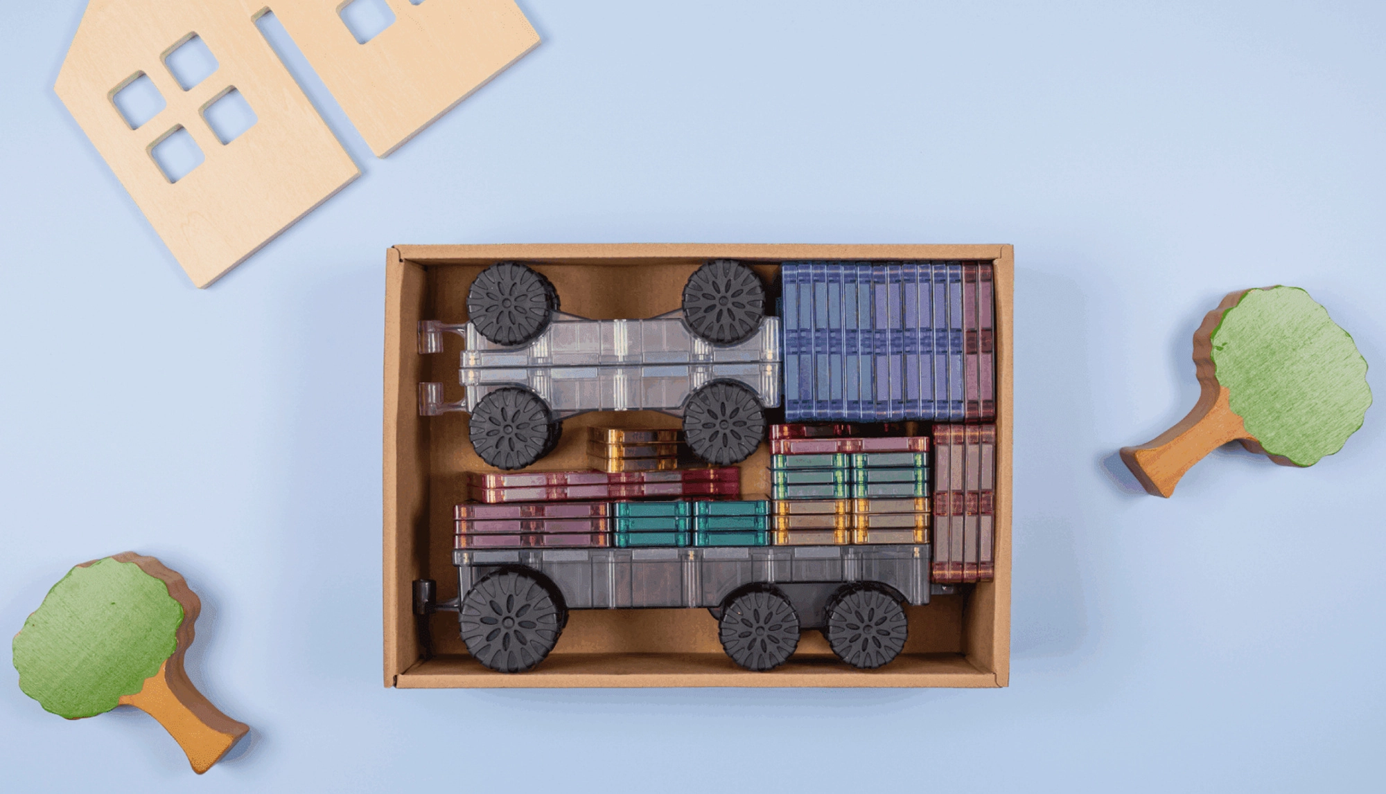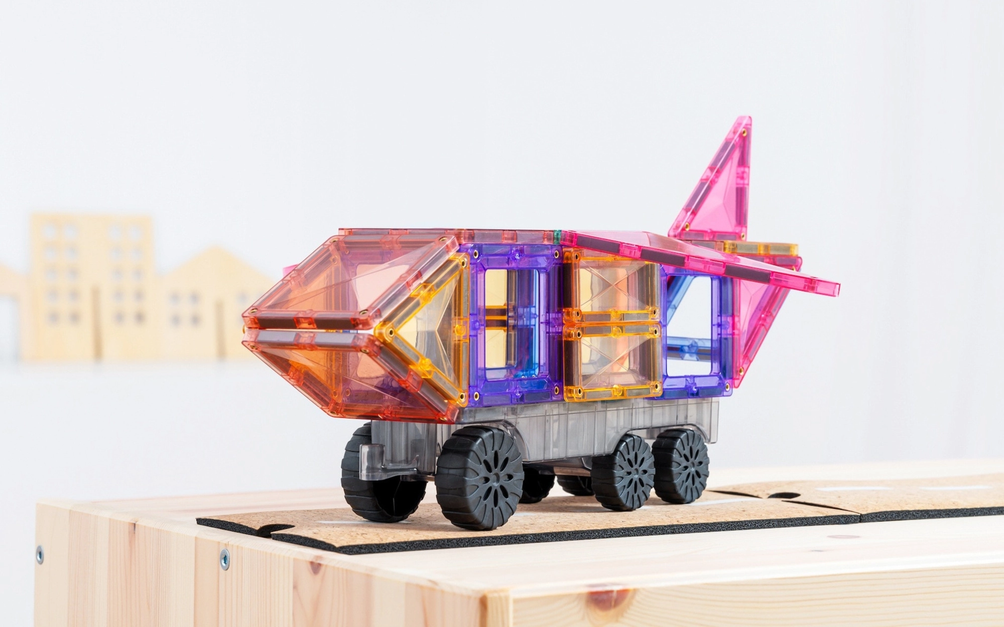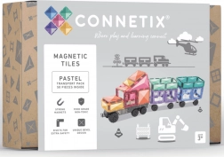 Pastelový CONNETIX Transport Pack prináša 50 odolných, priehľadných dielikov s pevnými neodýmovými magnetmi a tromi podvozkami s kolesami. Deti ľahko postavia autá, vlaky či futuristické stroje, pritom sa prirodzene zoznamujú s geometriou 2D/3D, symetriou a princípmi fyziky (rovnováha, stabilita, príčina–následok). Dieliky sa isto spájajú zo všetkých strán a „klik“ pri spojení motivuje k ďalším pokusom.