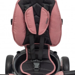Táto trojkolka kombinuje komfort, bezpečnosť a variabilitu. Otočné a posuvné sedadlo s nastaviteľným sklonom operadla umožní jazdu v smere aj proti smeru, zatiaľ čo päťbodové pásy a odnímateľná hrazda zaistia maximálnu istotu. Veľká skladacia strieška s okienkom chráni pred slnkom a umožní mať dieťa stále na očiach.