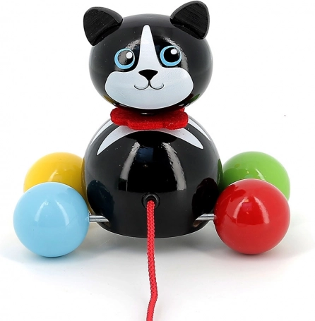 Ťahacia mačička Minou je skvelým spoločníkom na prvé prechádzky po byte. Deti si vďaka farebným guľôčkovým kolieskam a červenej šnúrke hračku rýchlo obľúbia a prirodzene rozvíjajú hrubú motoriku, stabilitu aj koordináciu oko–ruka. Ľahká a odolná konštrukcia z lakovaného masívu je príjemná na dotyk a ľahko sa čistí.