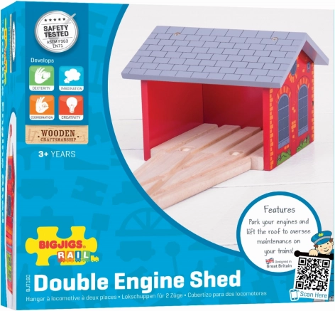 Praktické drevené depo pre dva vláčiky je ideálny doplnok každej drevenej vláčikodráhy. Kompaktné prevedenie so vstupnou koľajou umožní ľahko zaparkovať až dve súpravy, udržať poriadok a rozšíriť možnosti hry. Vyrobené z kvalitného dreva, ktoré spĺňa európske bezpečnostné normy a podporuje detskú fantáziu aj zručnosti. Kompatibilné s väčšinou drevených vláčikodr áh, odolné spracovanie a ľahká integrácia do koľajiska.