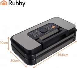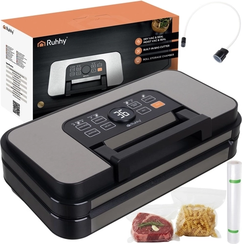 Hľadáte spoľahlivú vákuovačku pre dlhšiu trvanlivosť a menej plytvania? RUHHY ponúka vysoký podtlak až −95 kPa, dvojitú pumpu a možnosť jednoduchého alebo dvojitého zvaru pre perfektne tesné balenie aj pri vlhkejších potravinách. Prehľadný LED panel a automatické programy na suché, vlhké a vlhké+ potraviny zaistia skvelý výsledok bez zbytočných pokusov.