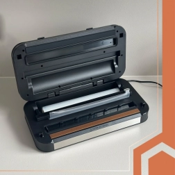 Súčasťou je vstavaný nožík a zásobník na rolu pre čistú a rýchlu prácu, vyberateľná miska na tekutiny pre jednoduché čistenie a odnímateľný napájací kábel pre pohodlné skladovanie. Režimy Vac & Seal, Pulse pre krehké potraviny a Inflate na ochranu krehkého tovaru rozširujú možnosti balenia v domácnosti aj v menšej gastronómii.