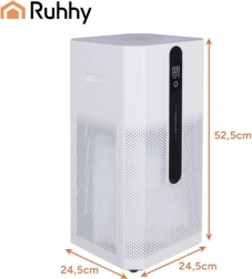 Inteligentná čistička vzduchu RUHHY Ioniqs kombinuje trojstupňovú filtráciu (predfilter + HEPA H12 + aktívne uhlie) a ionizáciu, aby odstránila prach, peľ, smog PM2.5, roztoče, baktérie, vírusy aj nepríjemné pachy. Vďaka CADR 370 m³/h rýchlo prečistí vzduch v obývačke, spálni aj kancelárii a farebný indikátor kvality vzduchu vás priebežne informuje o stave prostredia.